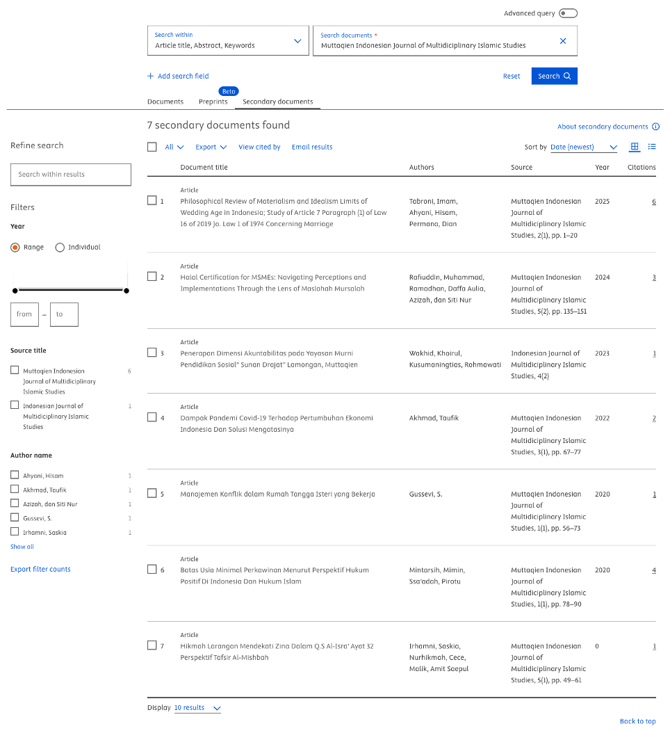 Muttaqien; Indonesian Journal of Multidiciplinary Islamic Studies has been 18 citedness in Scopus-Indexed Publications.